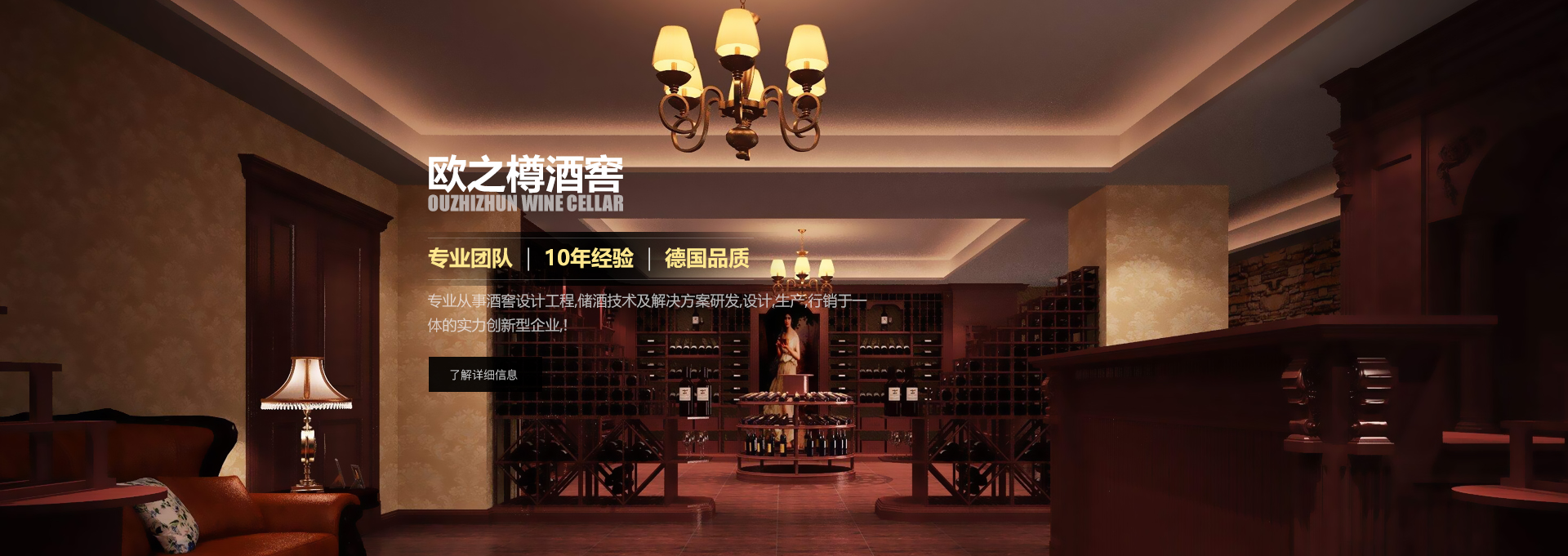 歐之樽酒窖專業(yè)的設(shè)計(jì)團(tuán)隊(duì),通過(guò)學(xué)習(xí)歐美成功酒窖的經(jīng)驗(yàn)與國(guó)內(nèi)市場(chǎng)相結(jié)合,使得我們的設(shè)計(jì)充滿著歐美氣息的中國(guó)風(fēng)。能讓你在緊張的城市氛圍中找到在大自然 中享受美酒的感覺(jué)。歐美進(jìn)口的全自動(dòng)控溫控濕系統(tǒng)既穩(wěn)定又方便,